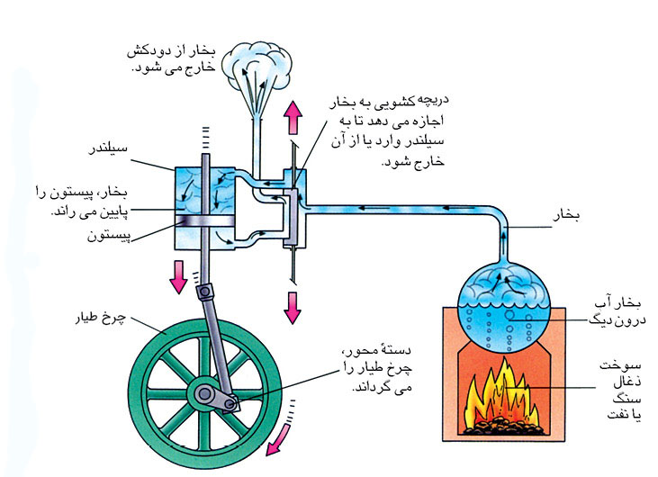 موتور بخار دستگاهیه که گرما رو به حرکت (انرژی مکانیکی) تبدیل میکنه.