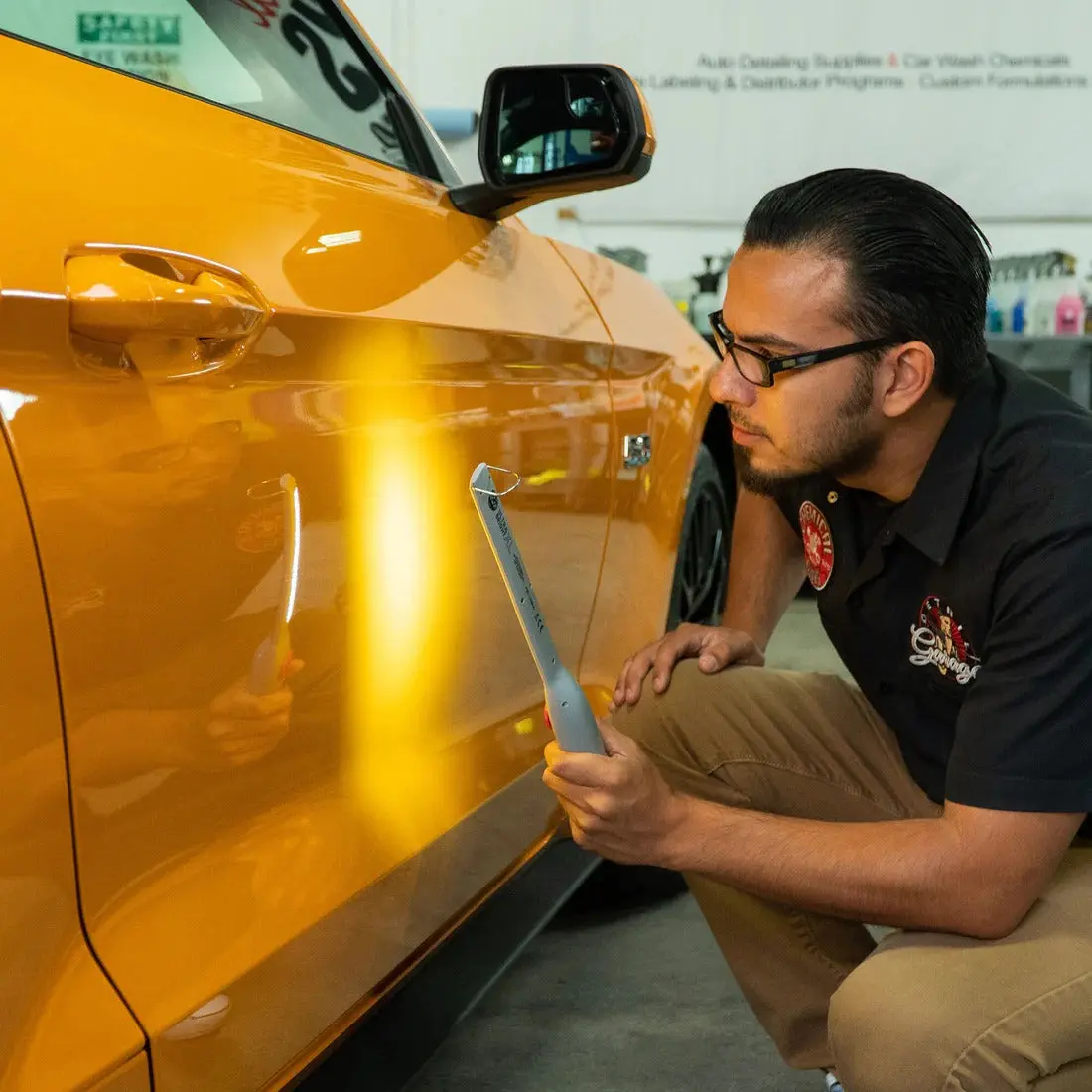 در صورت نیاز، ضخامت رنگ را با دستگاه Paint Thickness Gauge اندازه بگیرید تا از ایمن بودن پولیش مطمئن شوید.