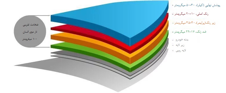 رنگ خودرو معمولاً از چند لایهی مجزا تشکیل شده است: