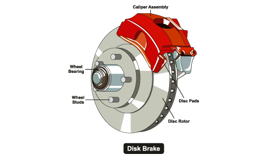 وقتی ترمز میگیری، کالیپر (Caliper) که روی دیسک نصب شده، دو لنت ترمز را از دو طرف روی دیسک فشار میدهد.