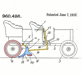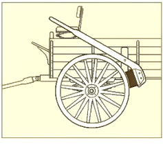 در واقع، یک تکه چوب با اهرم دستی به چرخ فشرده میشد تا خودرو را متوقف کند — شبیه ترمز کالسکهها.