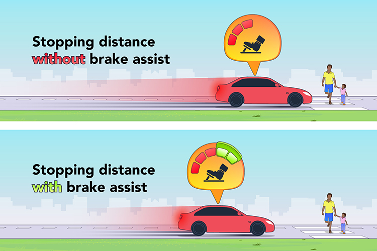 اگر سنسورهای خودرو تشخیص دهند راننده ناگهانی و با سرعت پدال ترمز را فشار داده (یعنی احتمال خطر وجود دارد)، سیستم بهطور خودکار فشار بیشتری به مدار ترمز وارد میکند — حتی اگر راننده پدال را کامل فشار نداده باشد.