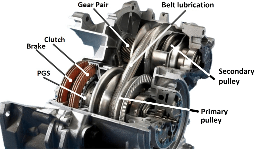 برخلاف گیربکسهای پلهای، CVT فاقد دندههای ثابت است. این گیربکس از دو پولی با قطر متغیر و یک تسمه یا زنجیر فلزی استفاده میکند که امکان تغییر پیوسته نسبت انتقال را فراهم میکند.
