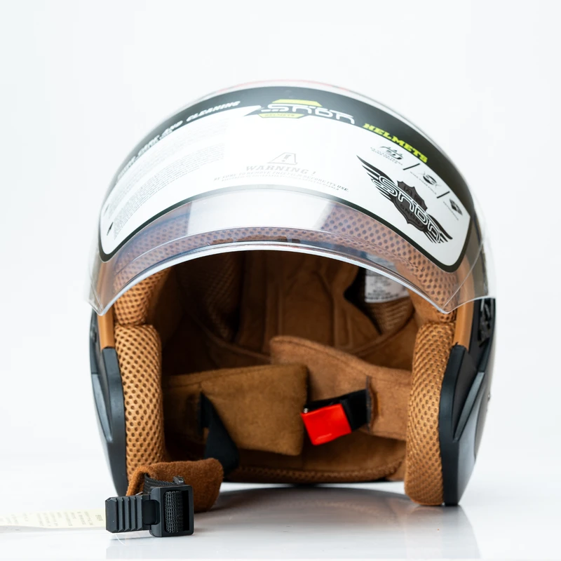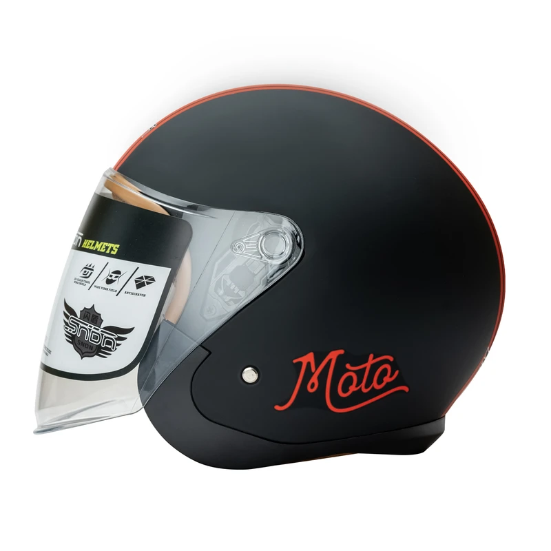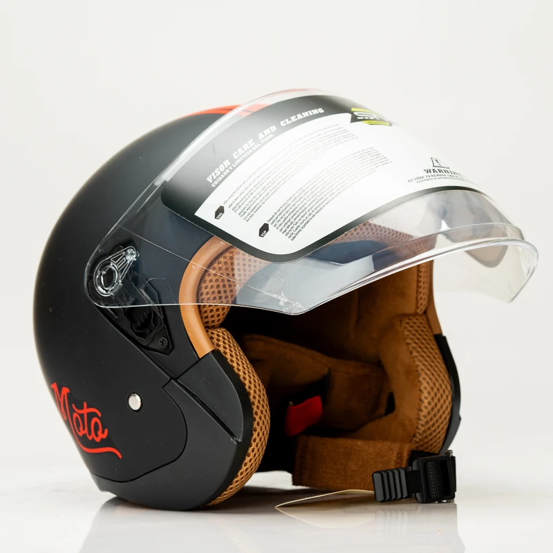کلاه کاسکت موتور مدل Meta با طراحی نیمه فک و رنگ مشکی مات دارای طلق شفاف با مکانیزم متحرک برای محافظت از صورت در برابر باد و گرد و غبار است. بدنه کلاه از جنس پلاستیک مقاوم با روکش مات طراحی شده و داخل آن پدهای قهوهای رنگ با پوشش پارچه مشبک قرار گرفته که باعث راحتی بیشتر هنگام استفاده میشود.این کلاه مجهز به بند قفلدار ایمنی با قابلیت تنظیم است . طراحی ساده و ظاهر جذاب این کلاه را به گزینهای مناسب برای استفاده شهری و جادهای تبدیل کرده است. برچسب راهنمای مراقبت و هشدار روی طلق را قبل از استفاده جدا کنید.