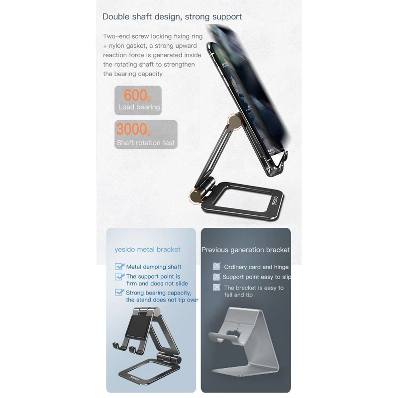 هولدر رومیزی یسیدو Yesido C98 ، یک محصول بسیار کاربردی از کمپانی یسیدو است؛ که با استفاده از آن میتوانید به راحتی تبلت خود را بر روی میز قرار داده و آن را تبدیل به نمایشگر شخصی خود کنید. به واسطه ویژگیهای فوق العادهای که در این محصول قرار داده شده، تماشای فیلم و سریال، خواندن مقاله یا کتاب الکترونیکی، وب گردی و… به یک تجربه خوشایند مبدل میشود. از این نگهدارنده بر روی هر جنس میزی میتوانید استفاده کنید؛ دیگر لازم نیست نگران لیز خوردن یا واژگون شدن آن باشید؛ این هولدر از مواد اولیهای ساخته شده که از روی هیچ جنس میزی سُر نمیخورد. دیگر نگرانی برای حمل و نقل هولدرتان وجود ندارد؛ قابلیت جمع شوندگی از جمله امکاناتی است که به کمک آن میتوانید این نگهدارنده را جمع کرده و به وسیله یک کیف با سایز متوسط، به هرجا که دوست داشتید ببرید و از آن استفاده کنید.